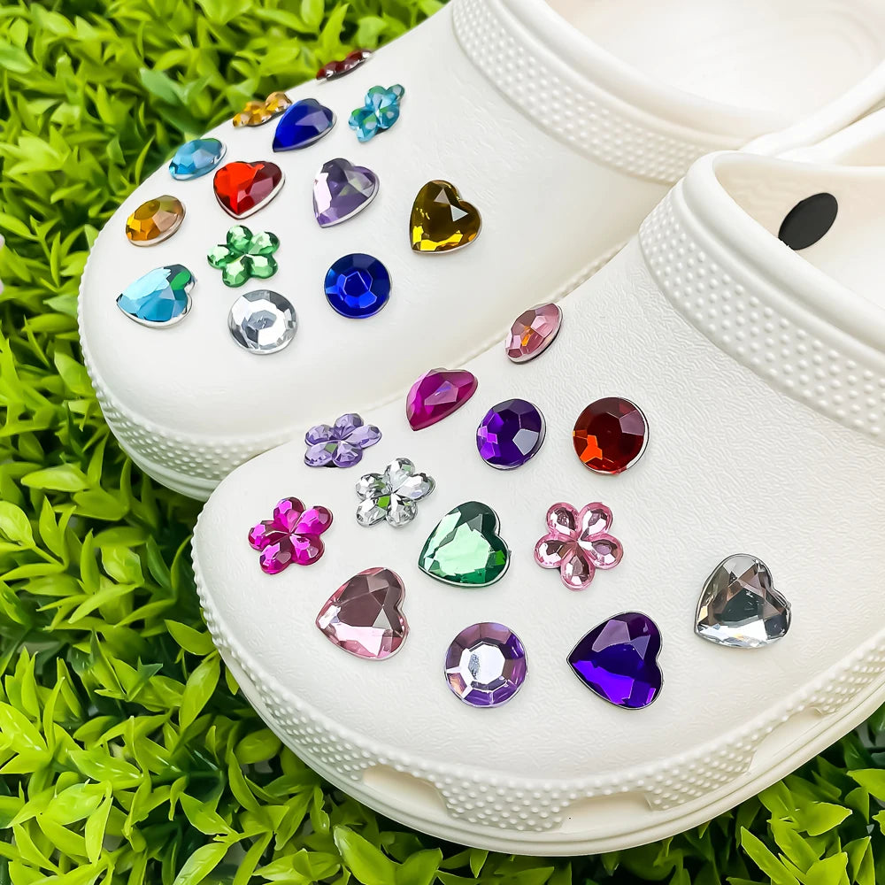 50pcs Heart Round Flower Shape Crystal Charms for Croc Women Colourful Croc Accessories Girls Kids Clog Buckles fit Wristband