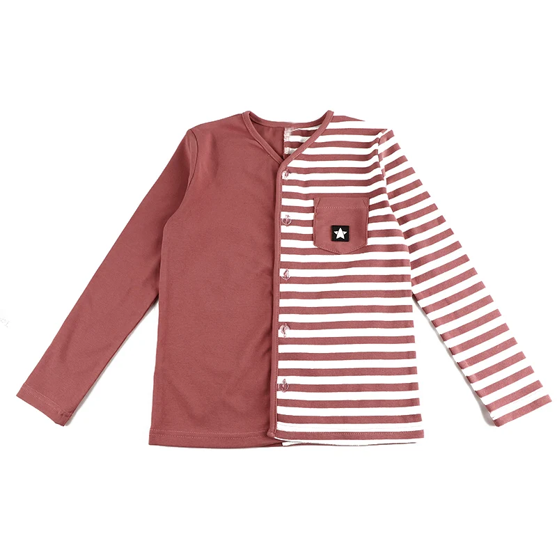 Children clothes 2pcs top and pants half striped pajamas kids clothes boy/girl clothes front opening long sleeves for all season