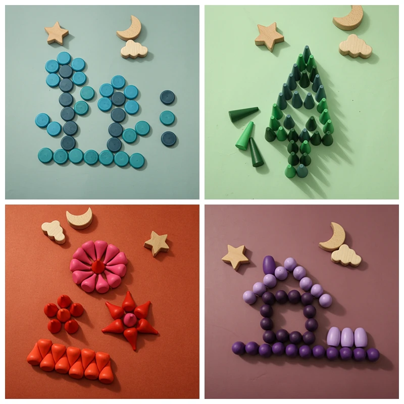 Creative Loose Parts Toys Baby Wooden Constructor Set Montessori Toys for Children Nordic Sensory Toy Waldorf Baby Gifts