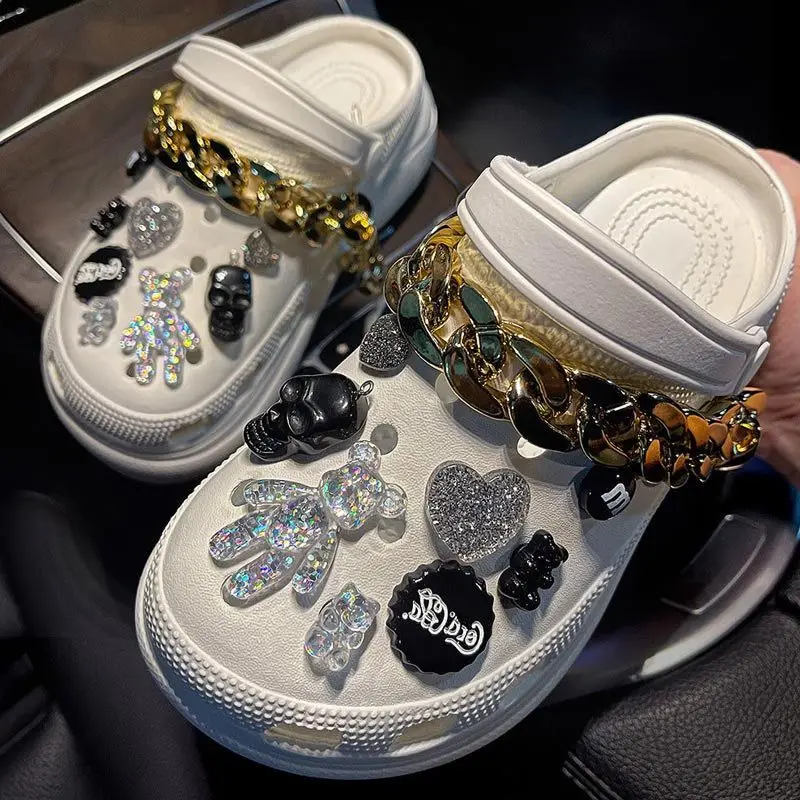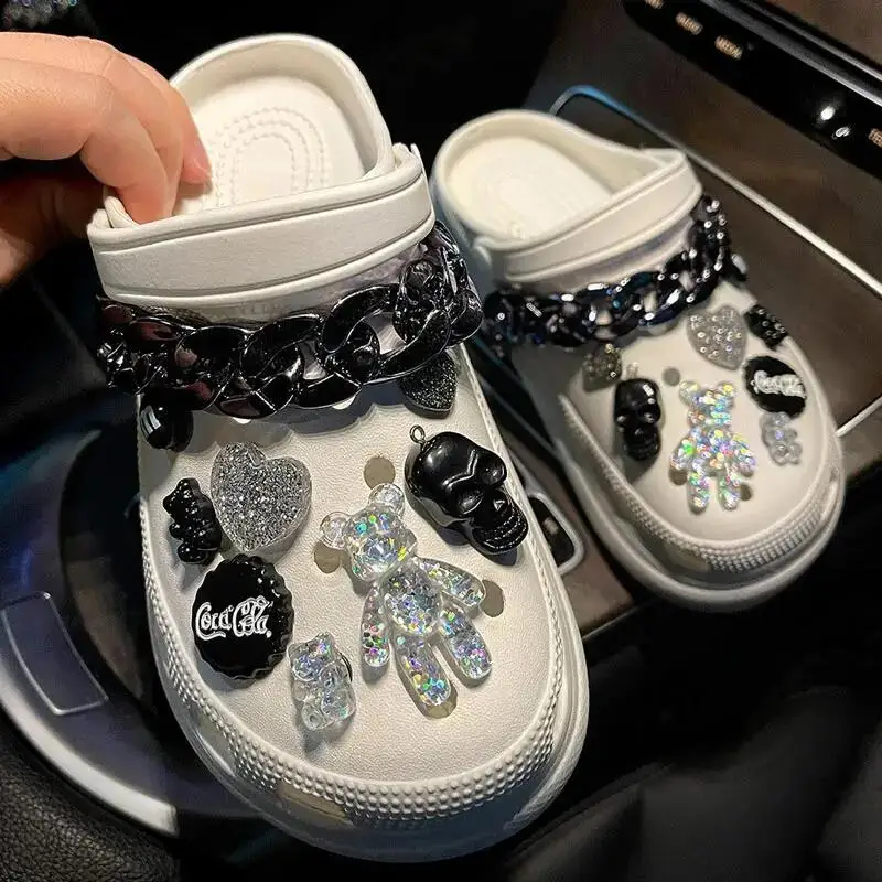 Hot Sale Bundle for Silvery Chain Hole Shoes Charms Designer Fashion Trend Charms for DIY Quality Cute Bear Clogs Shoes Buckle