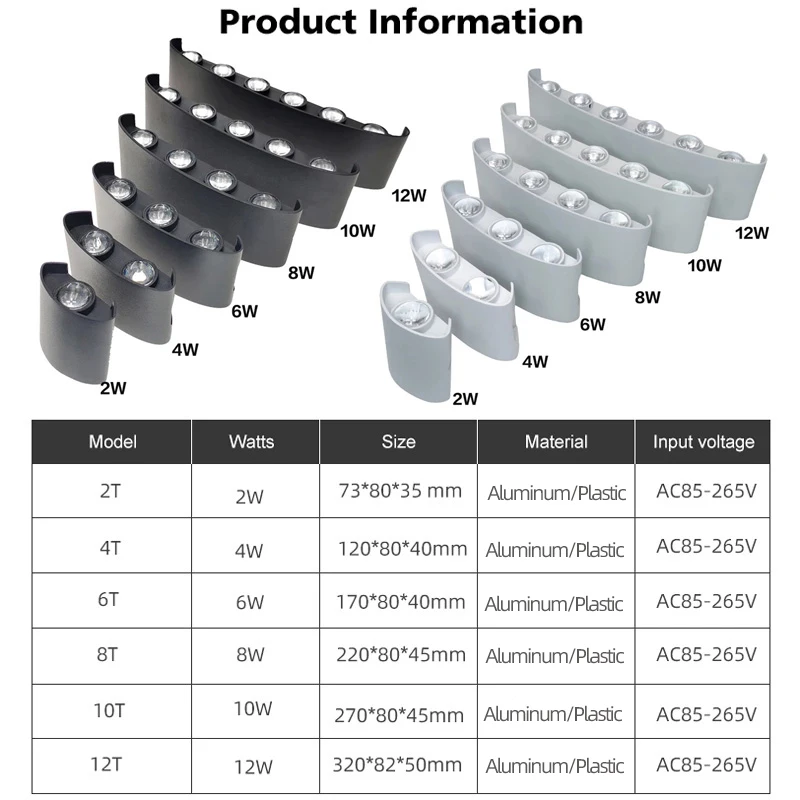 ▲2W 4W 6W 8W 10W 12W, wall lamp information