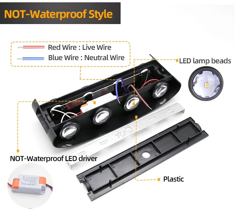 ▲Note: Different styles of LED wall lamp materials are not the same,(Waterproof-Al alloy)- material (aluminum); (Not waterproof - ABS)-material (plastic)