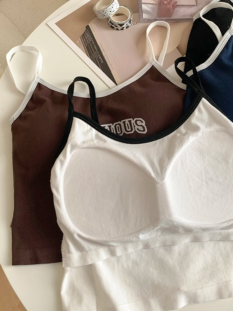 ITOOLIN Women Crop Tops With Padded Bra O-neck Letter Printing Solid Crop Tops Summer Tops Spaghetti Camisole 2023