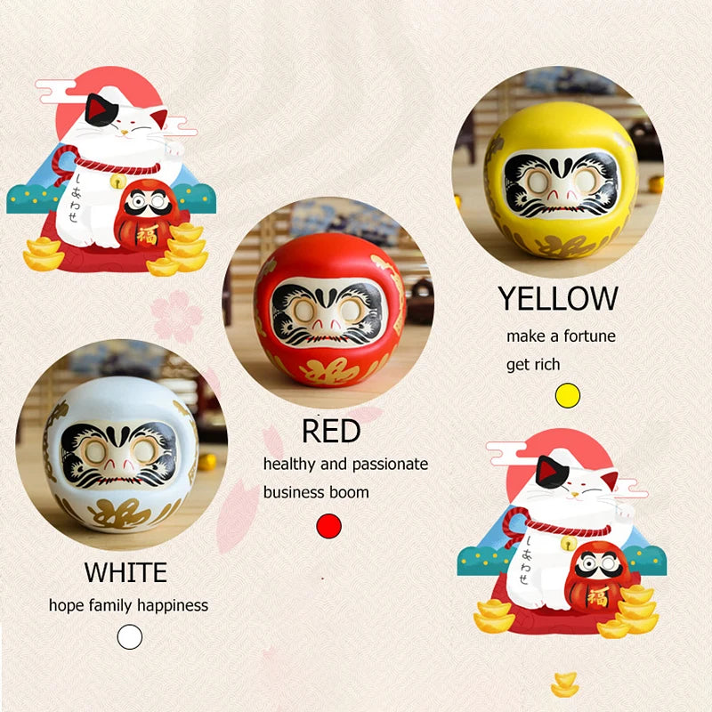 Japanese Ceramic Daruma Statue, Lucky Charm, Zen Ornament, Fengshui Figurine, Money Box, Home Tabletop Decoration, Gifts, 4"