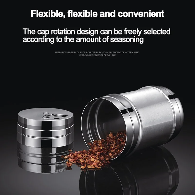 JJYY Salt Sugar Bottle Rotating Cover Multi-purpose Stainless Steel Kitchen Gadgets Spice Pepper Shaker Spice Jar Seasoning Can