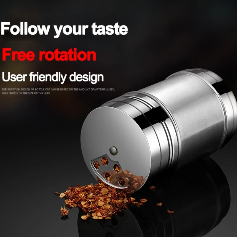 Multi-purpose 1pcs kitchen gadgets spice pepper shaker spice jar rotating cover spice can salt stainless steel sugar bottle