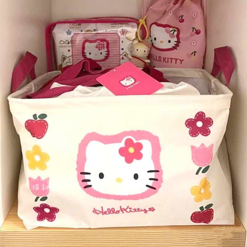 Kawaii New Hello Kitty Storage Basket Cute Harajuku Wardrobe Desktop Toys Cosmetics Storage Underwear Socks Storage Gifts