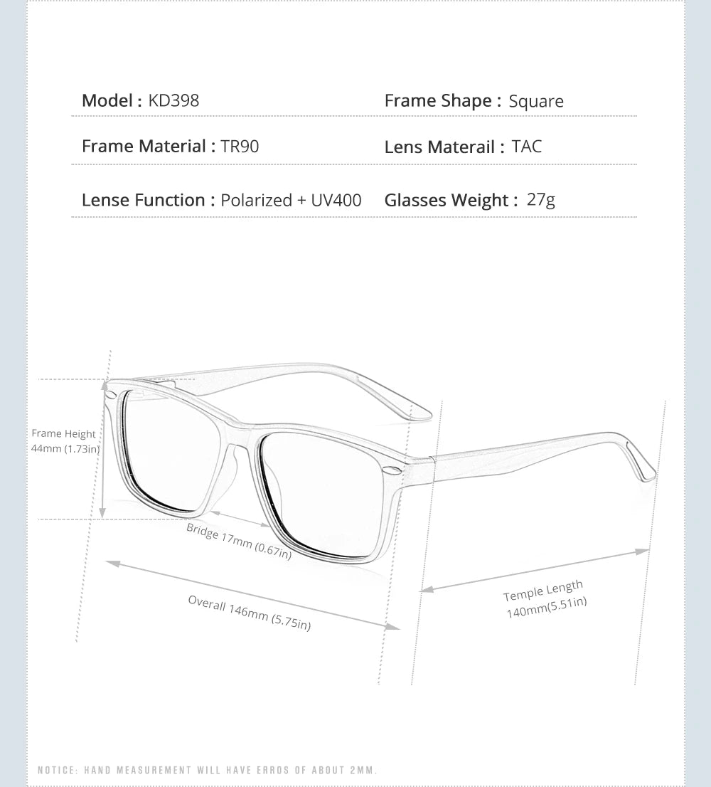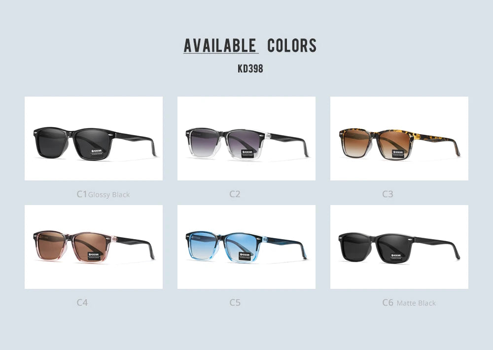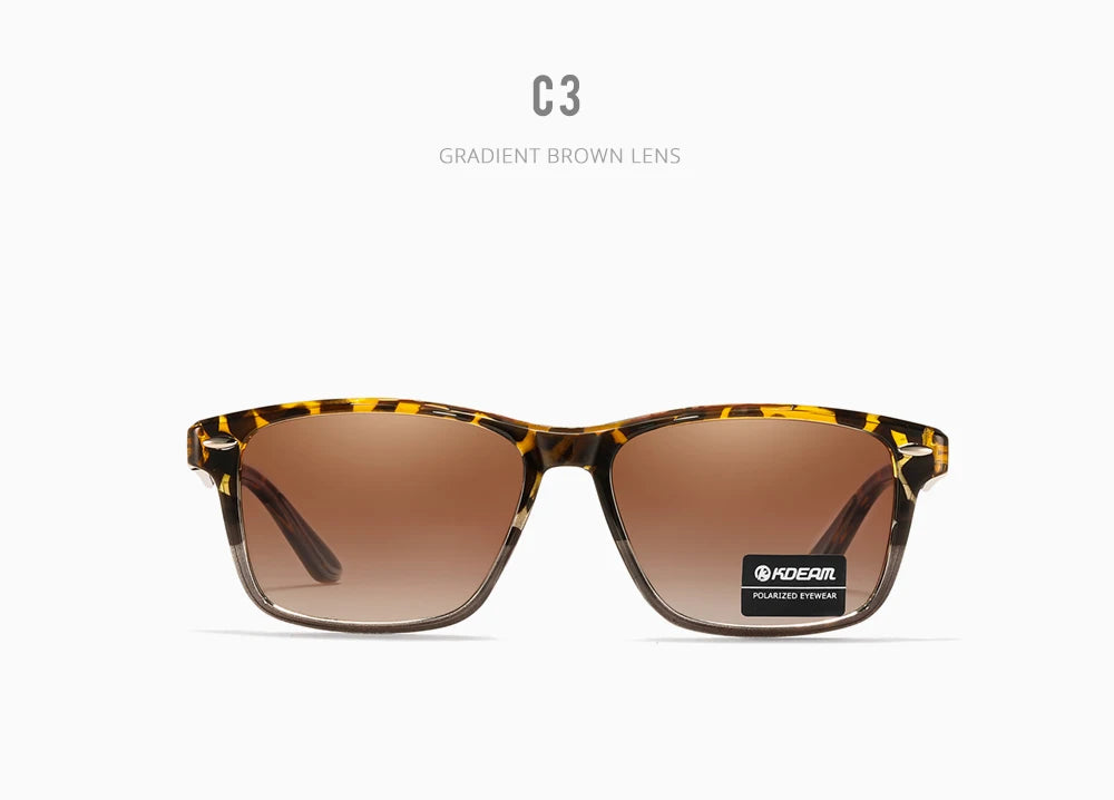 KDEAM All Matching Square Polarized Sunglasses For Men Women TR90 Material Frame Spring Hinges KD398