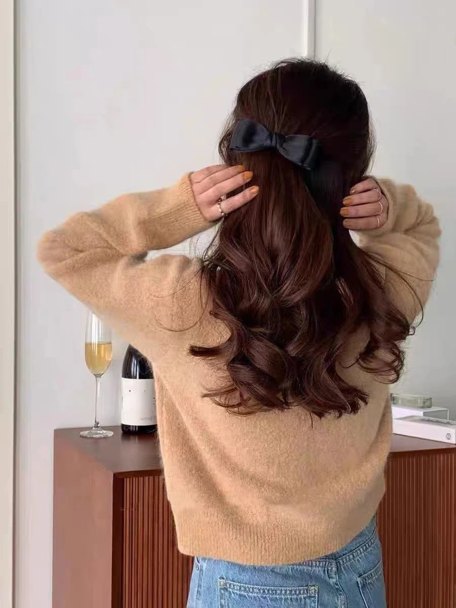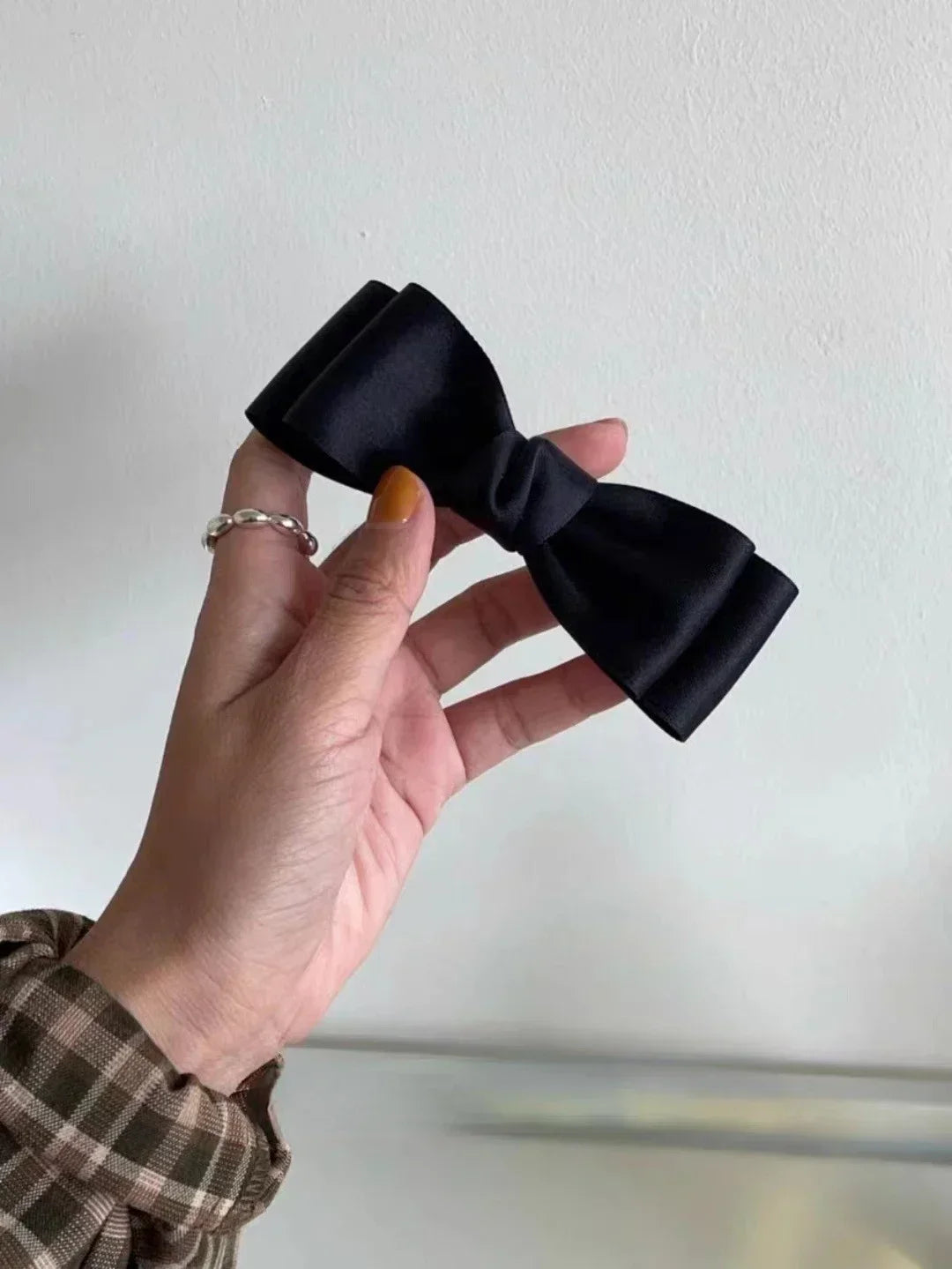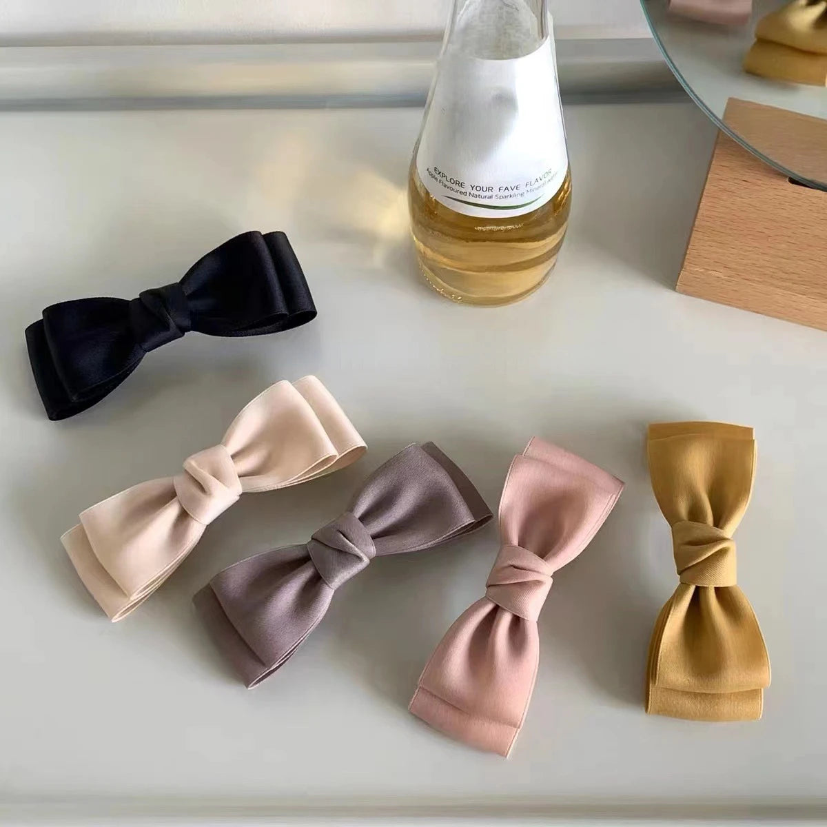 Korean Fashion Bow Spring Hair Clips Elegant Headwear Girls Black Pink Hair Pin Simple Spring Barrettes Hair Accessories