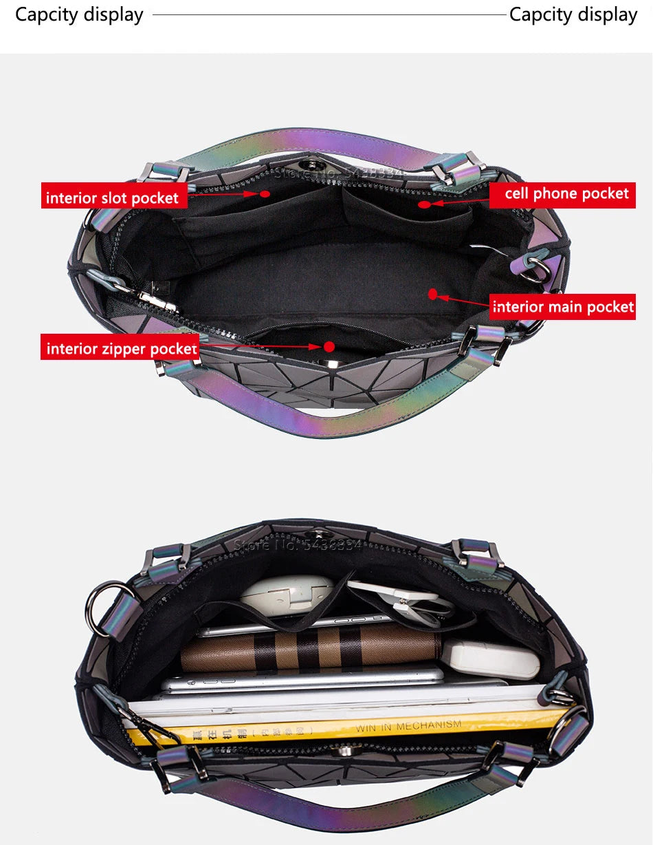 ladies Luminous bag geometric bags for women 2024 Quilted Shoulder Bags Laser Plain Folding female Handbags bolsa feminina
