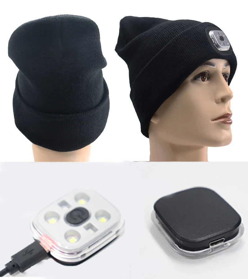 Led Light Knitted Hat Warm Elastic Beanie Autumn Winter Outdoor Sports Night Hiking Fishing Camping Glow Bonnet Unisex Headlight