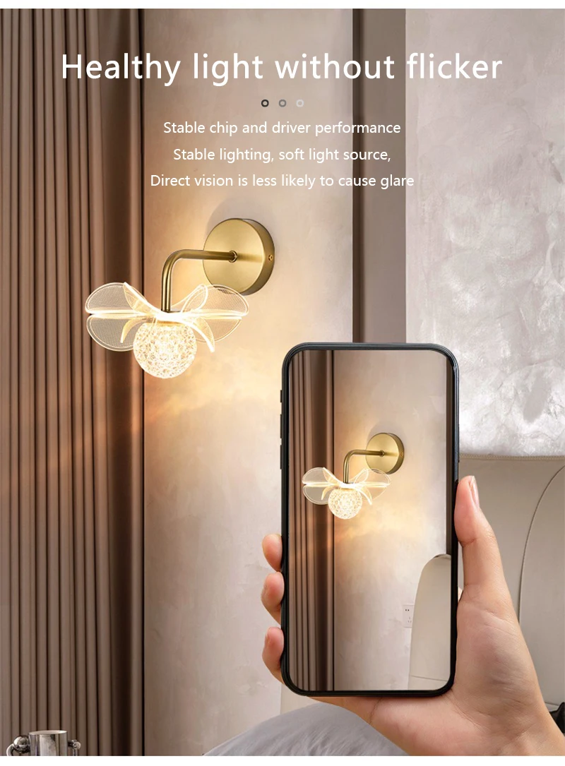 Modern LED Wall Lamp Luxury Flower Shape Bedroom Bedside Study Dining Room Living Room Background Wall Lamp Decorative Light