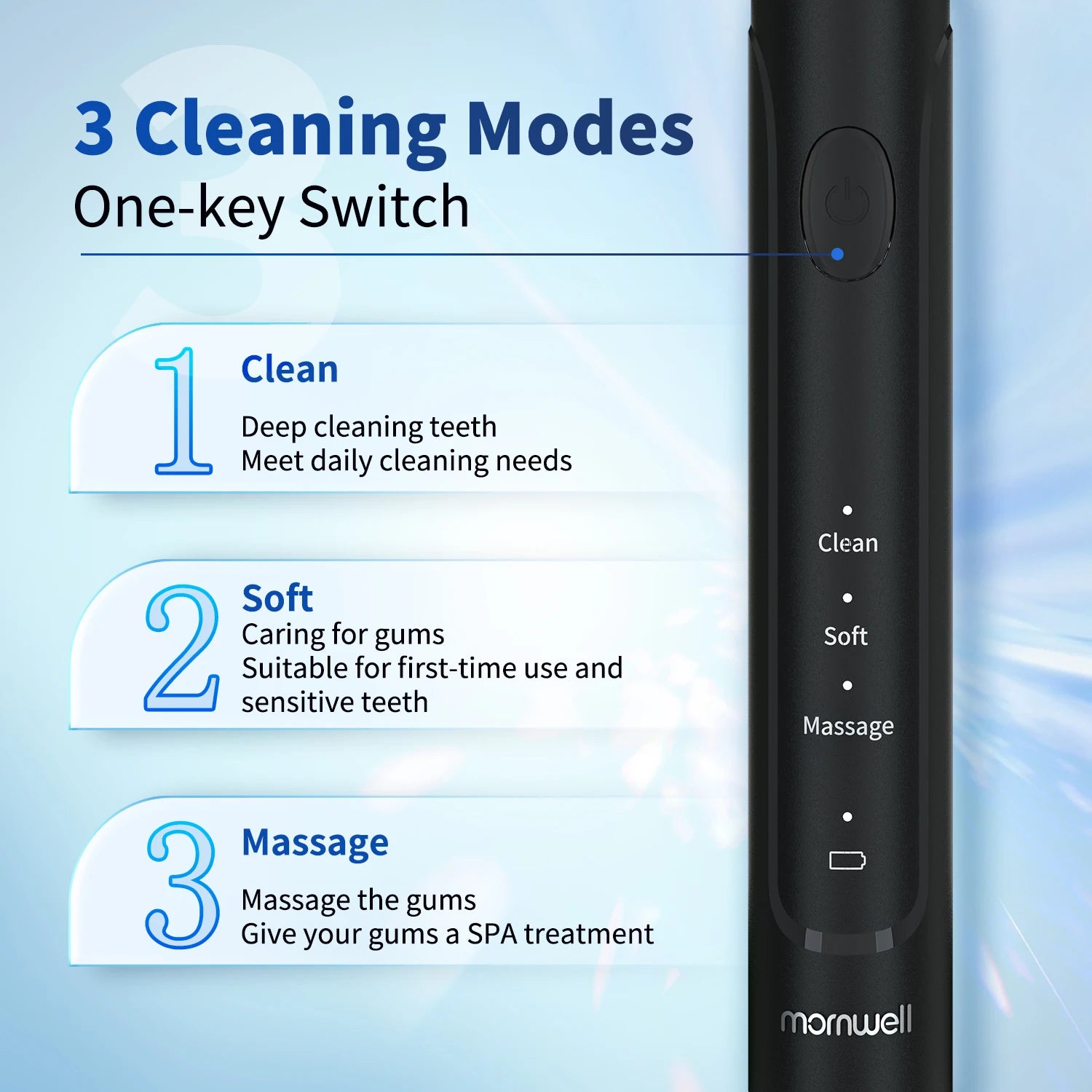 Mornwell T37 Electric Toothbrush Rotation Clean Teeth Adult Teeth Brush Electric Tooth Brush With 4 Extra Replacement Heads