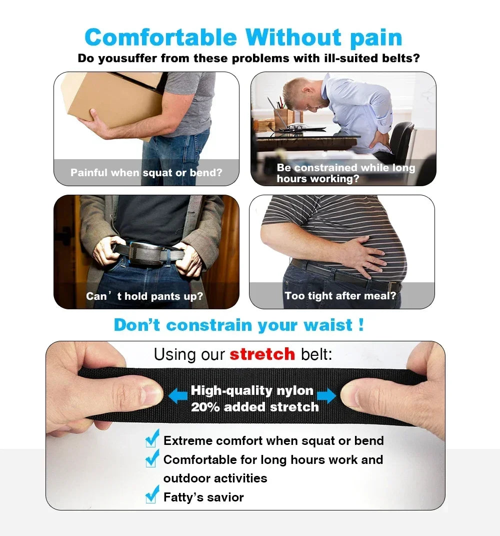 New Golf Sports Elastic Belt Tactical Belt Metal Automatic Buckle Tough Stretch Nylon Men Military Belt 115-150CM Big Size Belts