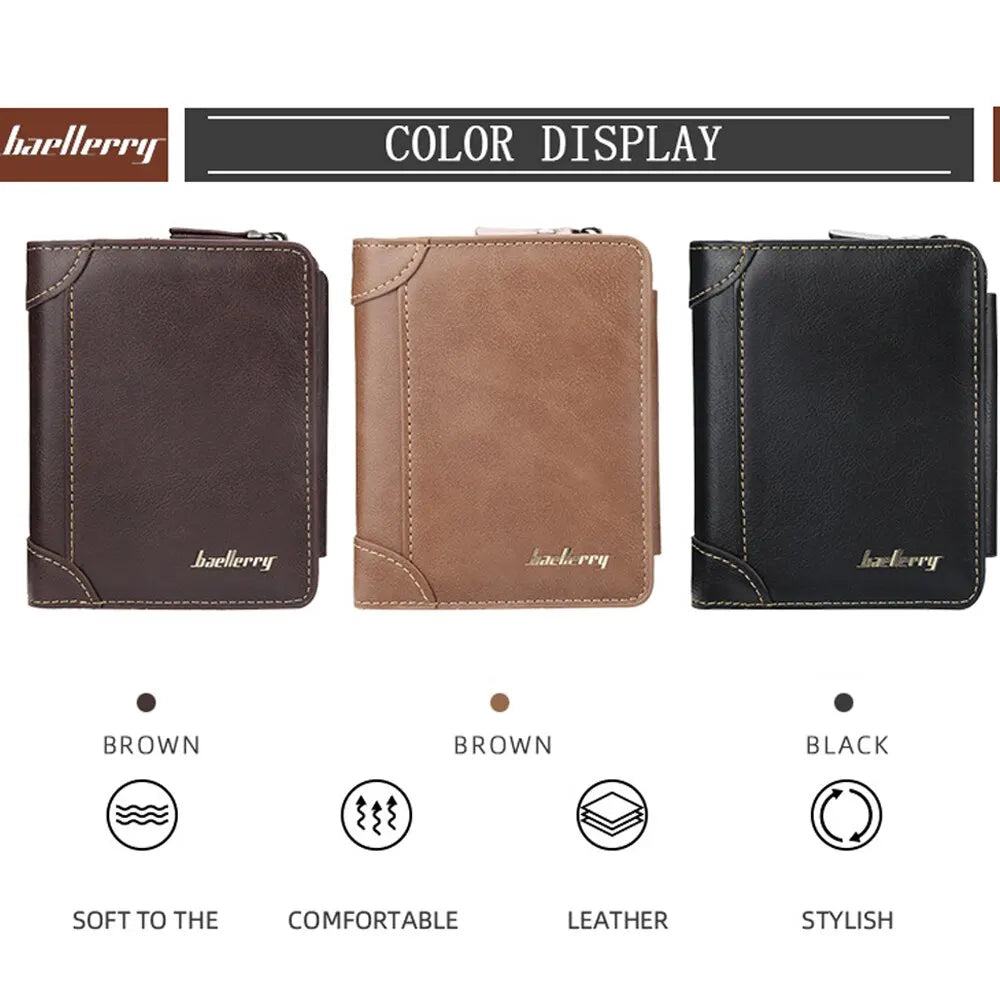 New PU Leather Men Wallets High Quality Zipper Short Desigh Card Holder Male Purse Vintage Coin Holder Men Wallets