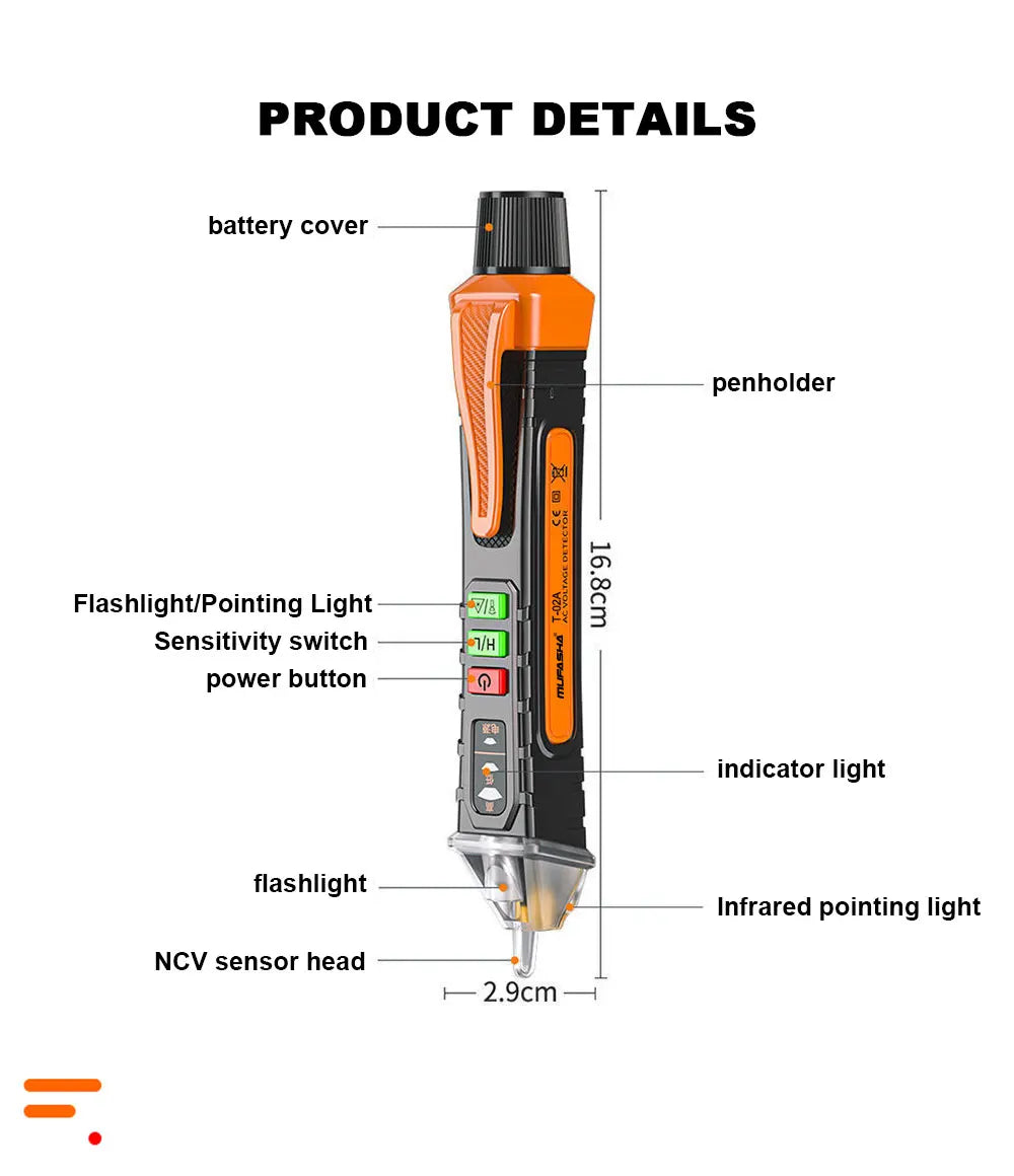 Non-Contact Voltage Detector Electrical Pen AC Voltage Tester Smart Breakpoint Finder 12-1000V